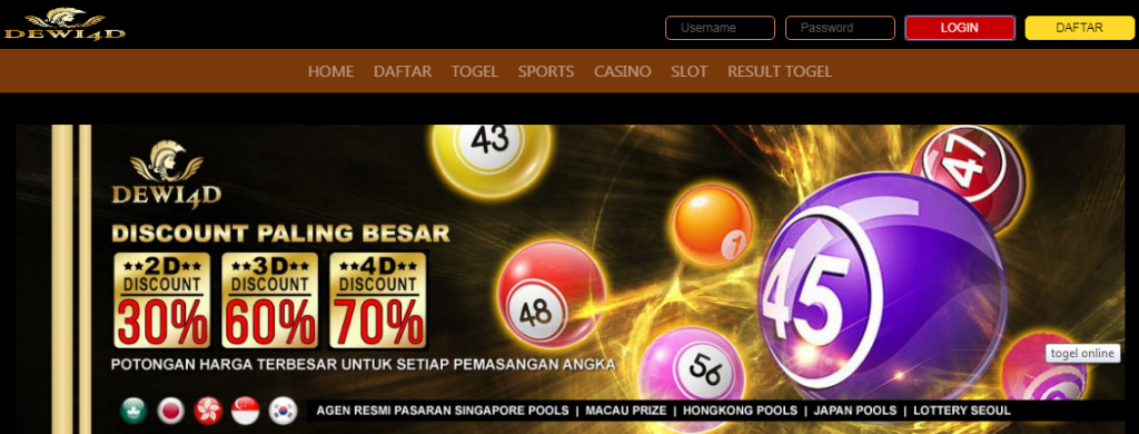 Dewi4d – ini merupakan salah satu situs bandar Togel Singapore terbaik dan terlengkap di Indonesia, kerena situs judi togel ini memberikan anda 5 pasaran yang paling populer yag ada di Indonesia, 5 pasaran tersebut antara lain pasaran togel singapore, togel macau, togel japan, togel seoul dan togel hongkong.